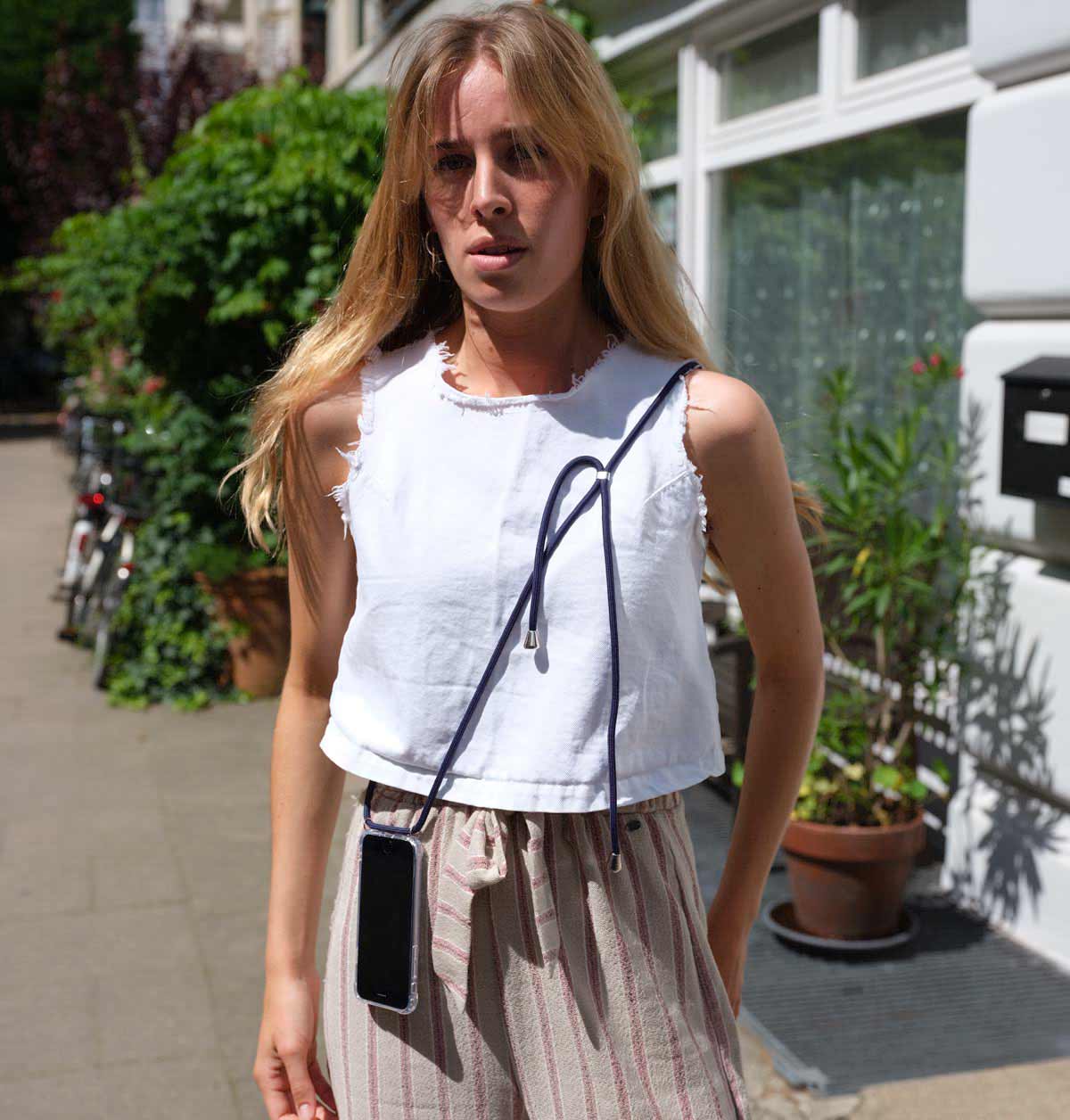 Die "Almost Royal" Smartphone Necklace im edlen, ruhigen Nachtblau steht für schlichte Eleganz. Mit den goldenen Metall-Akzenten ist das wahrhaftig eine royale, sehr edle Kombination.