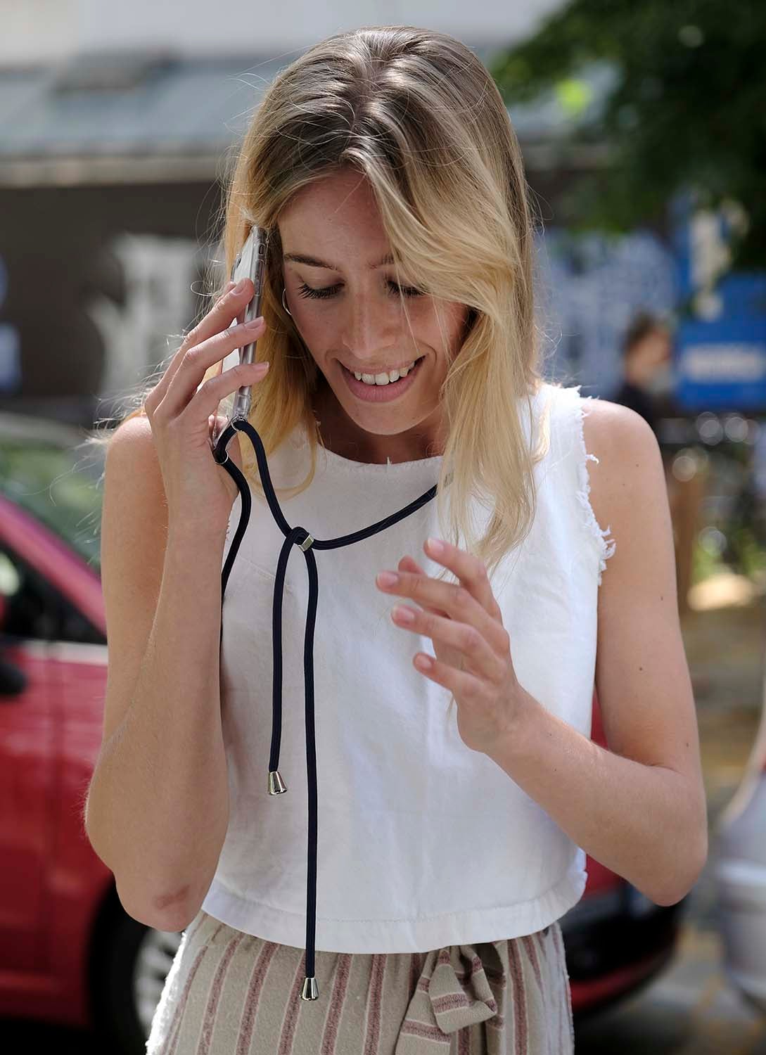Eine längenverstellbare Schnur aus sehr strapazierfähigem Nylon in einem schlichten Schwarz und eine transparente TPU-Smartphone-Hülle bieten Deinem Telefon den perfekten Schutz vor der Schwerkraft (daher ZERO G = schwerelos) während Du ganz entspannt Deinen Tag genießen kannst. Der praktische Slider, Verbindungsringe und Schnurenden aus Metall in der Farbe Gold runden das edle Design ab.