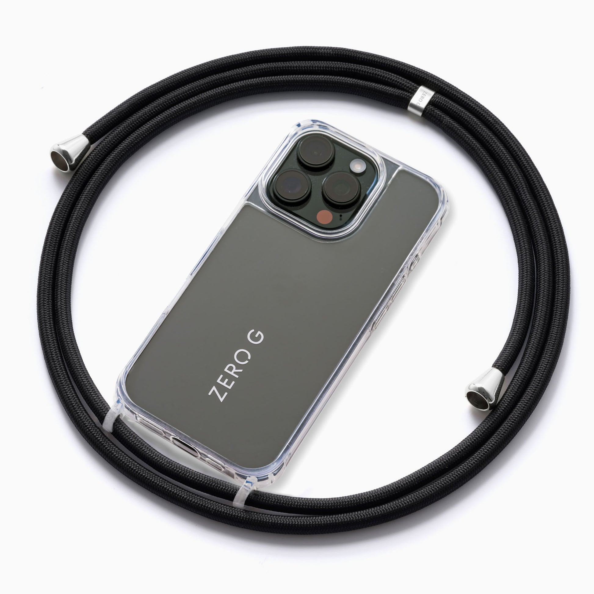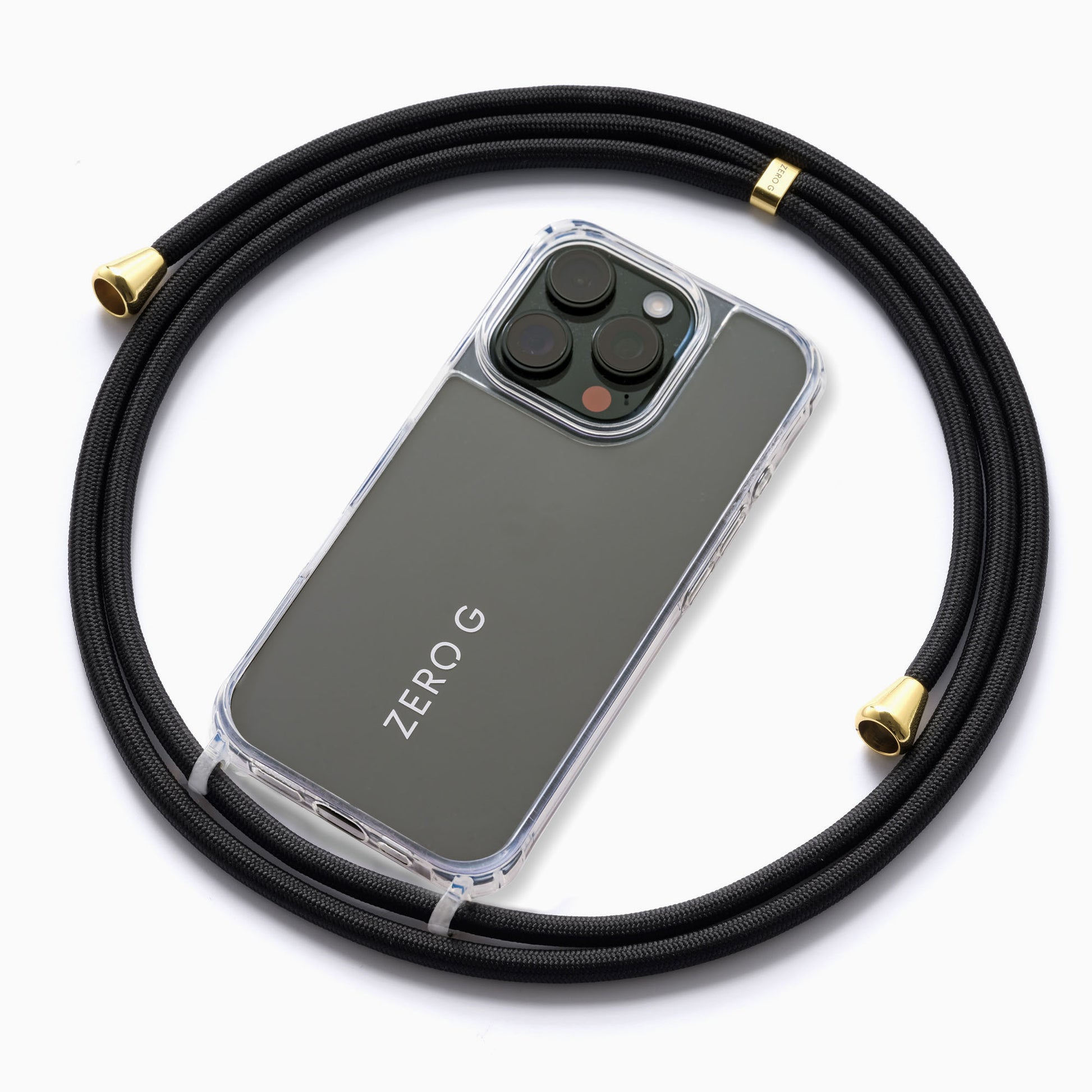 Eine längenverstellbare Schnur aus sehr strapazierfähigem Nylon in einem schlichten Schwarz und eine transparente TPU-Smartphone-Hülle bieten Deinem Telefon den perfekten Schutz vor der Schwerkraft (daher ZERO G = schwerelos) während Du ganz entspannt Deinen Tag genießen kannst. Der praktische Slider, Verbindungsringe und Schnurenden aus Metall in der Farbe Gold runden das edle Design ab.